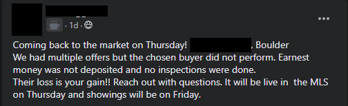 Here’s a real example, recently shared in a Boulder Realtor network (identifying information redacted):