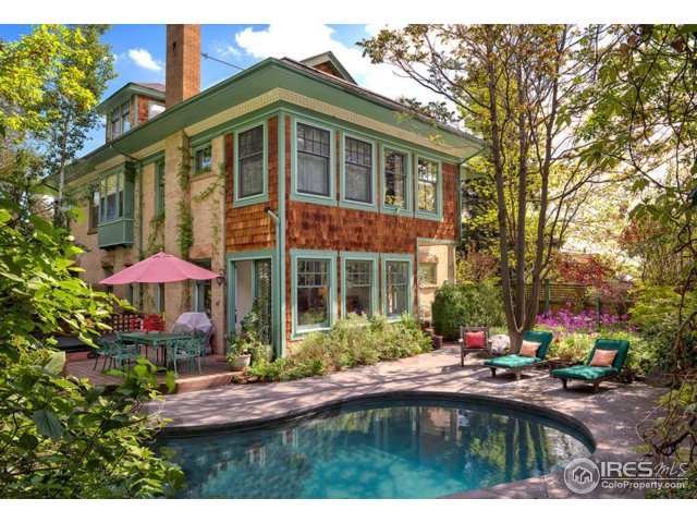 Theodore Roosevelt was still President when 665 12th street was designed and constructed, as it happens, by the same architect as the Hotel Boulderado, A jaw dropping 1908 beauty, it features a wrap-around front porch, classic historic built-ins and period details, and a swimming pool – all within strolling distance to Chautauqua park. For nearly twenty years, it was also owned by actor and director Peter Goldfarb.