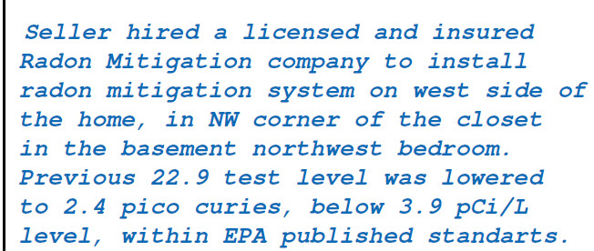 August 22, 2019 – A new seller’s property disclosure is signed showing a radon mitigation system was installed. Nothing else material is disclosed. I sure hope this isn’t what killed the deal with buyer #1. See lessons learned, below.